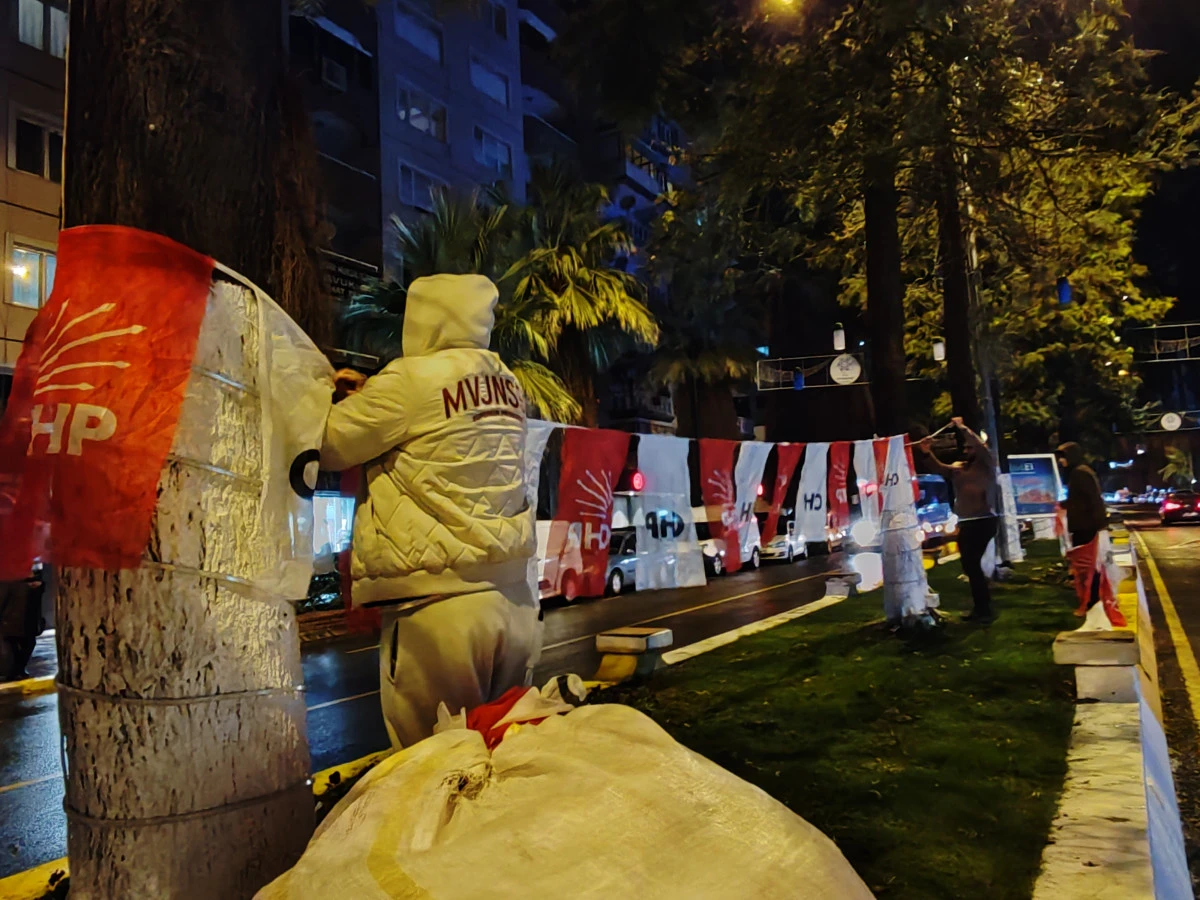 Bu açıklamanın ardından akşam saatlerinde sahaya inen CHP’li partililer, ilk olarak CHP Aydın İl Başkanlığı binasında, ardından da Adnan Menderes Bulvarı’nda bayrak asma çalışmalarına başladı.
