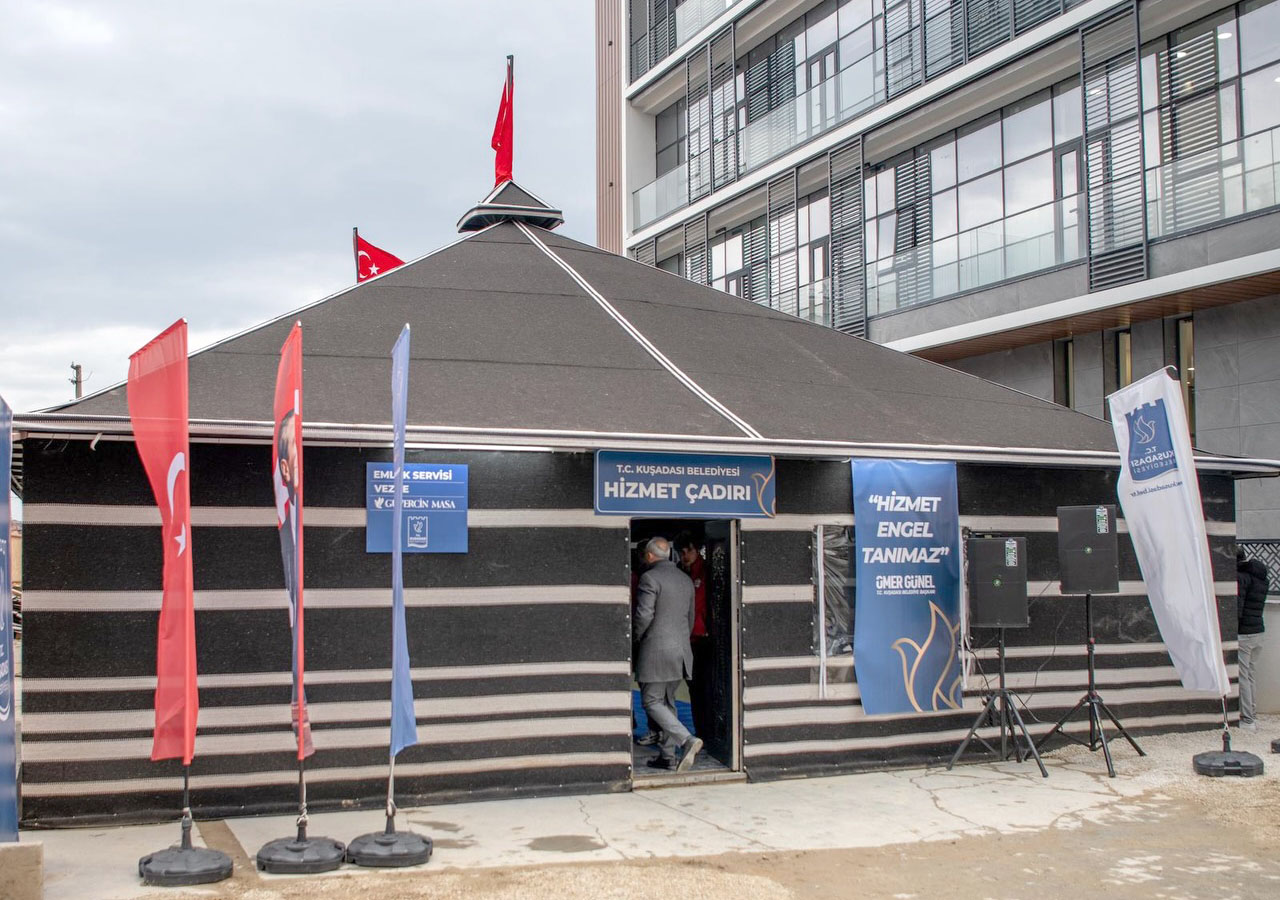 Kuşadası Belediyesi, Aydın Büyükşehir Belediyesi ana hizmet binasının zemin katını, tahsis protokolünde yer almadığı gerekçesiyle geçen ay boşaltmak zorunda kalmıştı. Bunun üzerine Başkan Ömer Günel’in talimatıyla belediye hizmetlerinin aksamaması için Yörük Hizmet Çadırı açılmıştı.
